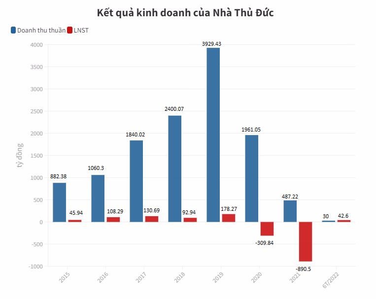 Kết thúc quý II/2022, Nhà Thủ Đức ghi nhận doanh thu thuần vỏn vẹn 10 tỷ đồng, giảm gần 92% so với cùng kỳ. Doanh nghiệp lỗ sau thuế tới 17 tỷ đồng trong khi cùng kỳ năm trước có lãi 155 tỷ đồng.
