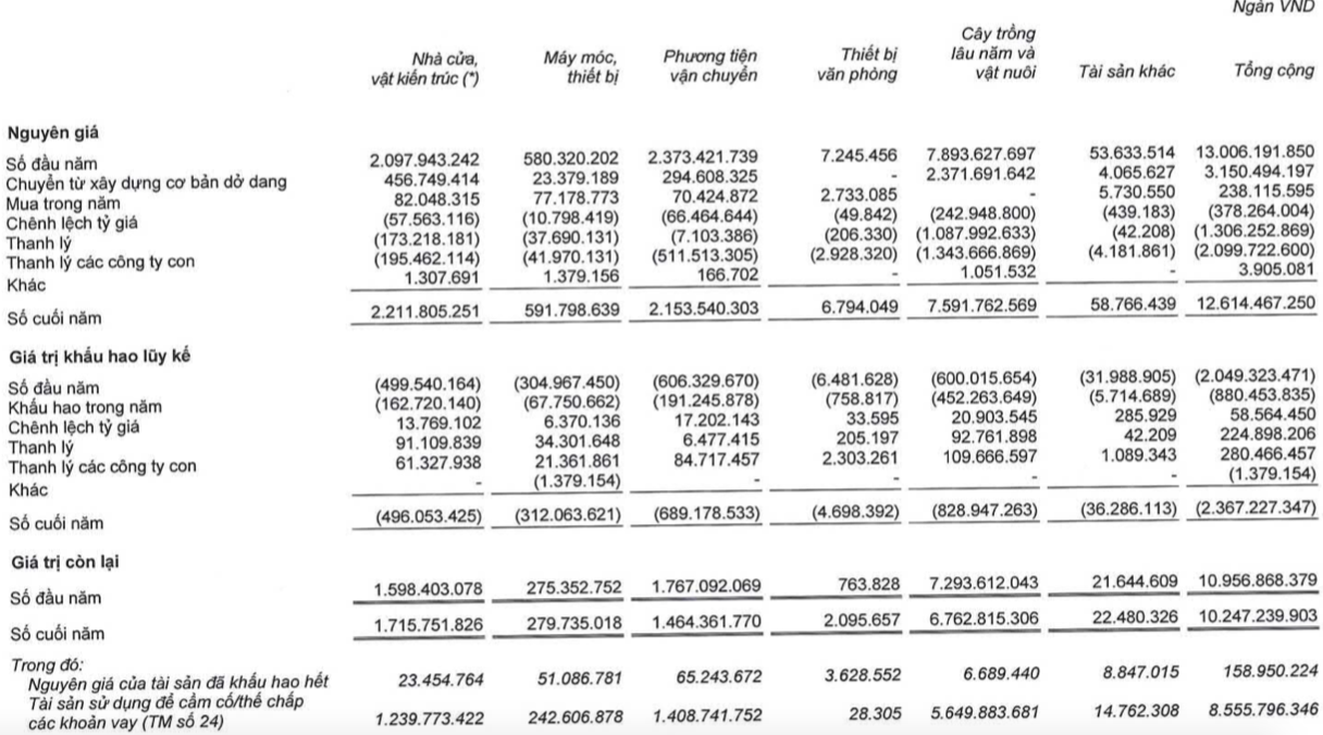 Lỗ khác 1.408 tỷ do đánh giá lại các tài sản và chuyển đổi chi phí đầu tư vườn cây