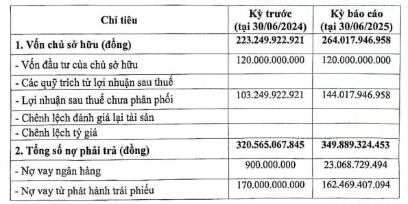 Đơn vị kiểm toán cũng nhấn mạnh, tại 30/6/2025, Công ty có một số khoản nợ quá hạn phải trả cơ quan thuế, người lao động, trái chủ và các đối tác với tổng giá trị là 259,16 tỷ đồng . Tại 1/1/2025, Công ty có một số khoản nợ quá hạn phải trả cơ quan thuế, người lao động, trái chủ và các đối tác với tổng giá trị là 90,51 tỷ đồng.