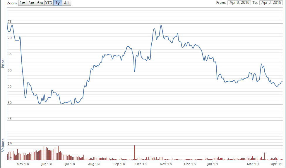 Cổ phiếu NVL vừa ghi nhận phiên thứ 5 hồi phục sau chuỗi giảm giá từ cuối tháng 10/2018 tới nay. Kết phiên 8/4, cổ phiếu đạt 57.100 đồng/cp.