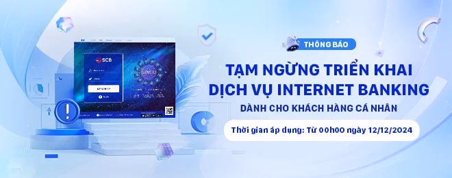 Ngân hàng Thương mại Cổ phần Sài Gòn (SCB) vừa phát đi thông báo tạm ngừng triển khai dịch vụ Internet Banking dành cho khách hàng cá nhân, bắt đầu từ 0h00 ngày 12/12/2024.