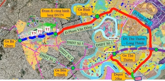 Phương án 5 kết nối từ sân bay Tân Sơn Nhất đến sân bay Long Thành bằng đường sắt theo hướng tuyến đường sắt đô thị số 4 từ - Nhà ga T1, T2 TSN - Trường Sơn - Hoàng Văn Thụ - Phan Đình Phùng - Hai Bà Trưng - Bến Thành kết nối vào tuyến đường sắt đô thị số 2 đến Thủ Thiêm kết nối với tuyến đường sắt Thủ Thiêm - Long Thành đến sân bay Long Thành (khoảng 42km).