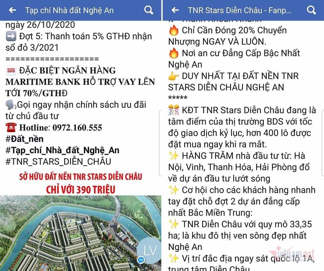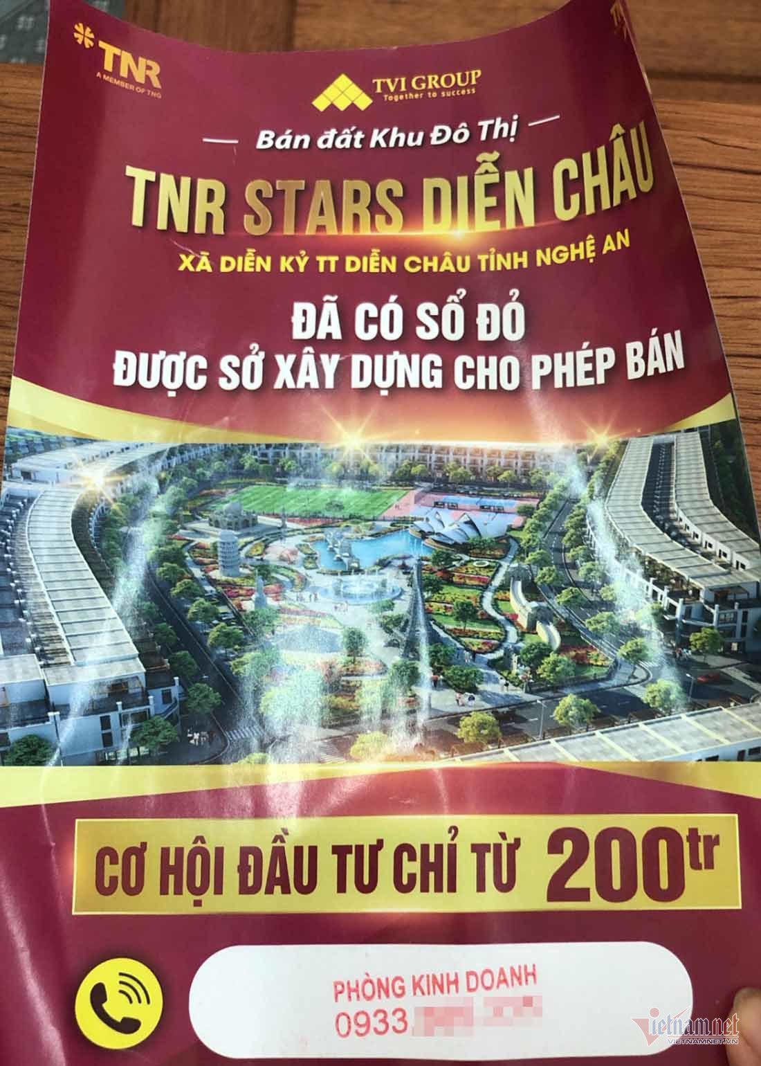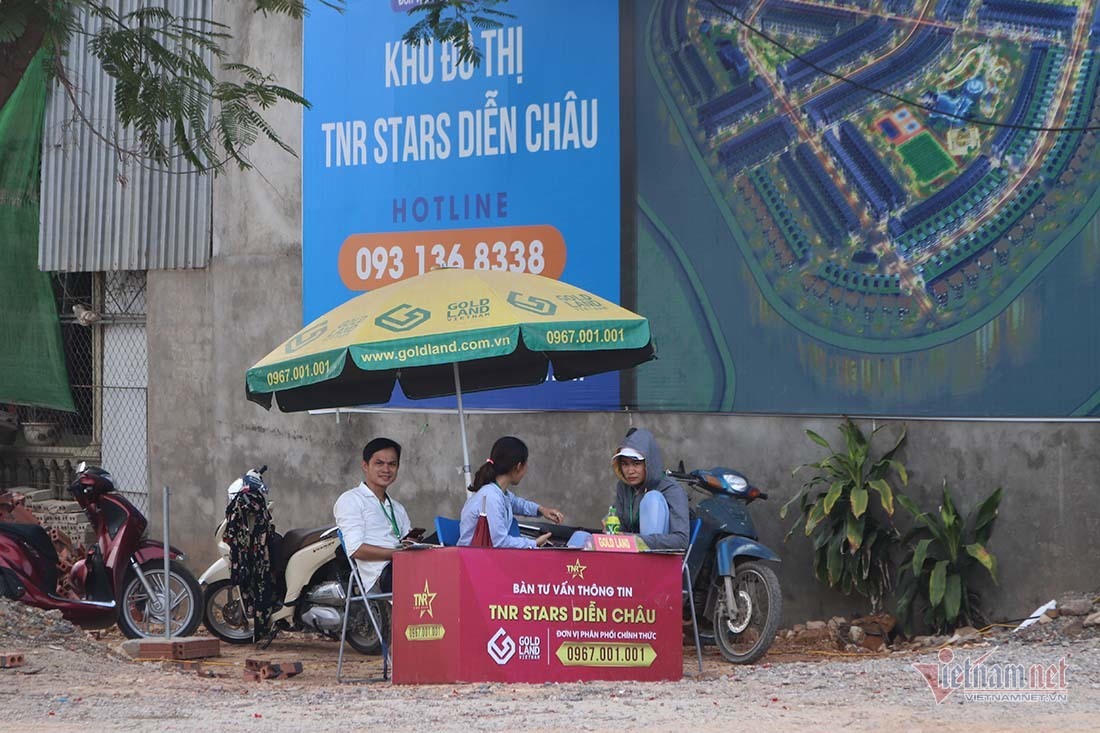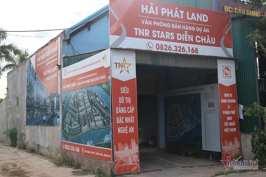 Mặc dù vậy, trước cổng của dự án đã xuất hiện một số văn phòng văn phòng bán hàng, điểm tư vấn bán đất nền, tờ rơi… rao bán dự án đất nền TNR Stars Diễn Châu.
