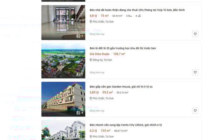 Còn theo ghi nhận trên trang batdongsan.com.vn với tài chính khoảng 2 tỷ trở lên, hiện người mua có thể giao dịch được các lô đất ở vị trí đẹp, có nhiều tiềm năng tăng giá tại Từ Sơn. Những nơi sầm uất, ở trung tâm thành phố như phường Trang Hạ, phường Đông Ngàn hay phường Đồng Nguyên, giá đất nền dự án đa phần dao động 4-6 tỷ/lô, tương đương ngưỡng 40 triệu/m2.