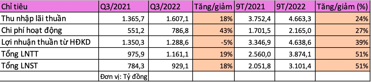 Lợi nhuận trước thuế trong quý 3/2022 đạt hơn 1.161 tỷ đồng, tăng 18% so với cùng kỳ năm trước.