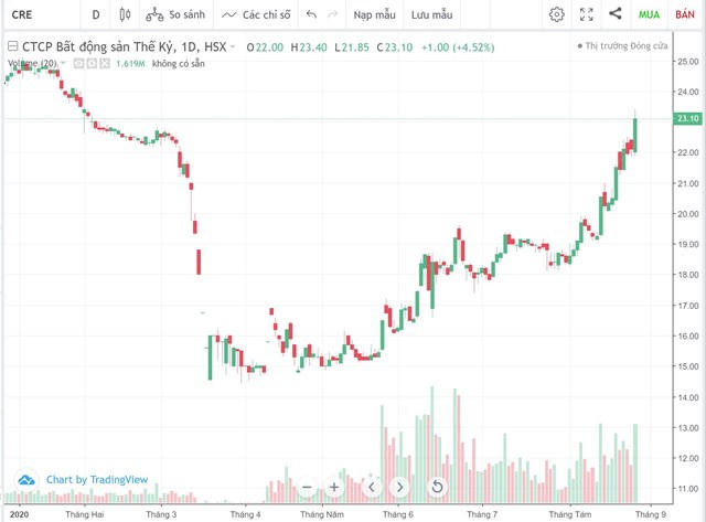 Đến đầu tháng 8/2020 giá cổ phiếu CRE đã tăng khá mạnh từ mệnh giá 18.600 đồng lên 23.100 đồng khi kết phiên ngày 26/8 (tương đương mức tăng 25,5%). Nếu tạm tính tại mức giá ở thời điểm hiện tại, ông Hưng sẽ cần chi khoảng 23,1 tỷ đồng để mua số cố phiếu đã đăng ký nêu trên.