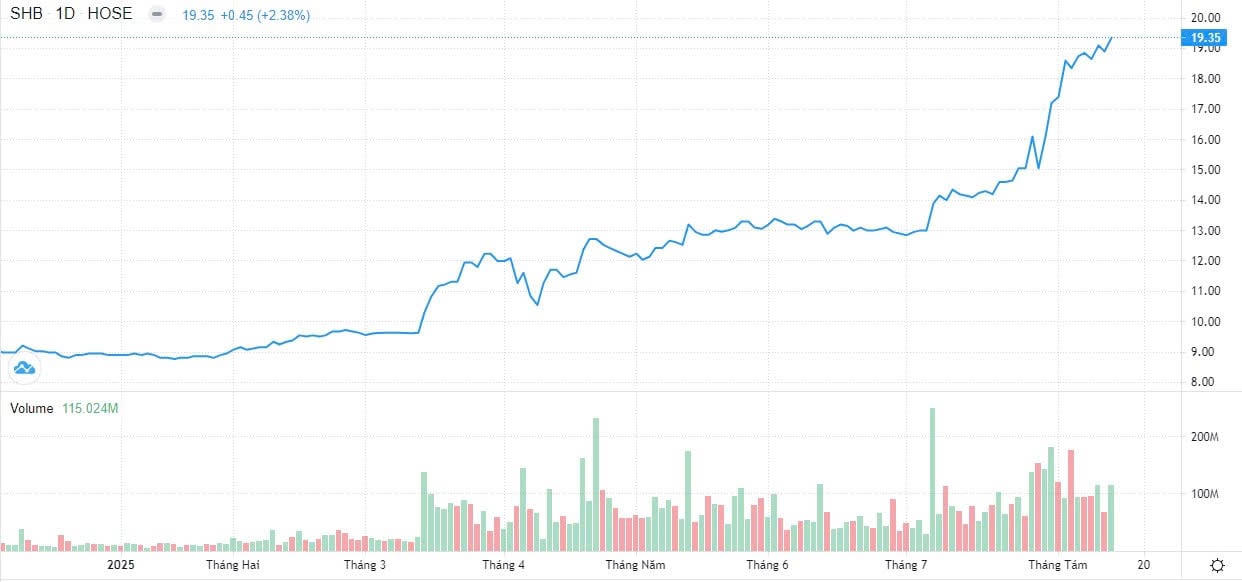Thông tin chia cổ tức bằng cổ phiếu được thị trường đón nhận tích cực trong bối cảnh cổ phiếu SHB ghi nhận mức tăng giá mạnh và khối lượng giao dịch bứt phá trong quý II/2025, đặc biệt là sự bứt tốc trong tháng 7 tăng hơn 33% với khối lượng giao dịch bình quân ở mức cao trên 90 triệu đơn vị/phiên. Tính đến đầu tháng 8, khối ngoại đã mua ròng tổng cộng gần 107 triệu đơn vị, phản ánh niềm tin gia tăng vào triển vọng doanh nghiệp.