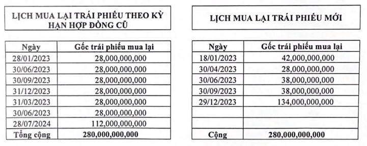 | Lịch mua lại trái phiếu theo từng giai đoạn đã được SHI và trái chủ thỏa thuận. |