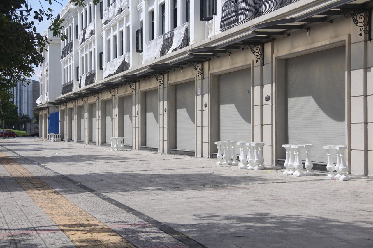 Trên tuyến đường Lê Trọng Tấn (quận Hà Đông), những dãy nhà phố thương mại 3 - 4 tầng, mặt tiền từ 6 - 10m, thiết kế hiện đại, nằm dọc trục đường chính của các dự án khu đô thị mới, đồng loạt đóng cửa im lìm. Không có người ở, không có hoạt động kinh doanh, không ánh sáng vào ban đêm - tất cả tạo nên một khung cảnh đìu hiu, hoàn toàn trái ngược với viễn cảnh nhộn nhịp từng được quảng bá khi mở bán.