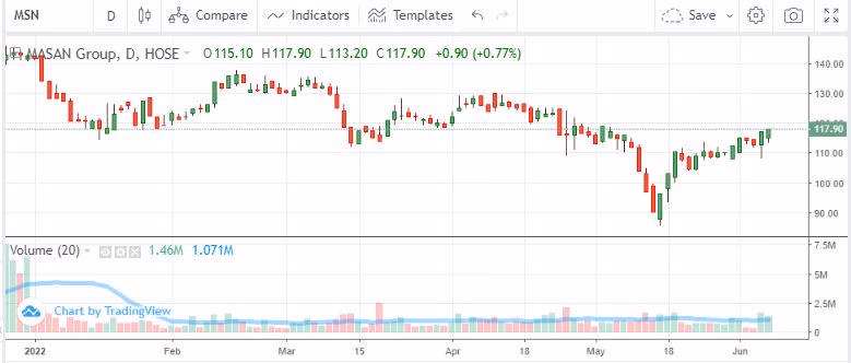 Đóng cửa phiên giao dịch ngày 7/6, thị giá cổ phiếu MSN của Tập đoàn Masan giao dịch quanh mức 117.90 đồng/cp, giảm tới 22% so với thời điểm đầu tháng 4/2022.