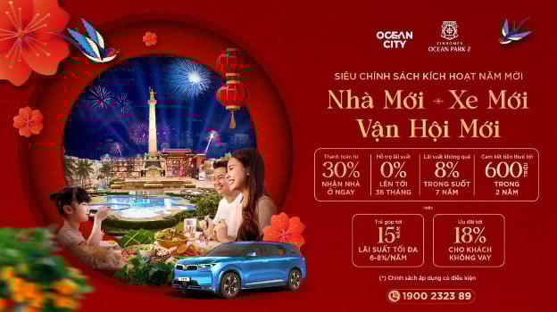 Vinhomes vừa đưa ra các chính sách ưu đãi “bom tấn” dành cho khách hàng và nhà đầu tư quan tâm đến các sản phẩm BĐS vượt trội tại Vinhomes Ocean Park 2 - “quận Kinh Đô” của Ocean City, mở ra cơ hội “ở nhà mới, đón Tết sang” hấp dẫn bậc nhất thị trường.