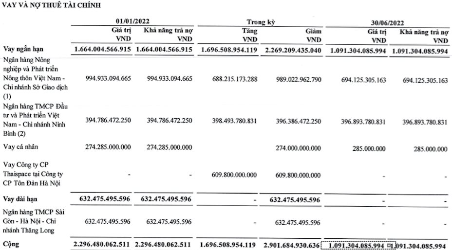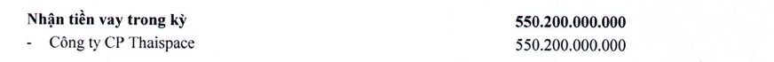 Liên quan đến khoản tiền vay, khoản vay ngắn hạn tại Thaispace có tổng phát sinh trong kỳ 609,8 tỷ đồng và đã được tất toán trả hết trong kỳ.