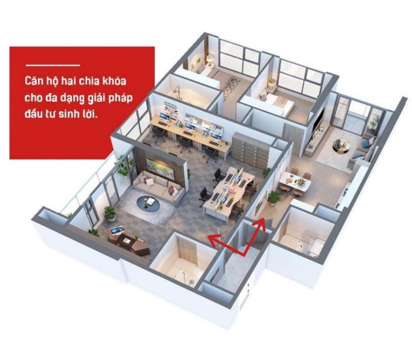 Ưu thế vượt trội của Dual key so với các hình thức căn hộ khác nằm ở việc chủ sở hữu có thể dễ dàng sử dụng cho nhiều mục đích khác nhau. Khách hàng có thể tối ưu hóa diện tích sử dụng: ở một căn và cho thuê một căn (văn phòng, homestay cao cấp, căn hộ studio); hoặc sử dụng làm văn phòng một căn và cho thuê căn còn lại. Còn nếu chọn Dual key như một khoản đầu tư, đây chính là cách đảm bảo dòng tiền, bảo vệ khoản đầu tư dài hạn. Bởi cùng một khối tài sản nhưng có thể có tới hai nguồn thu nhập nhờ tách căn hộ và các vấn đề phát sinh với đối tác này cũng không làm ảnh hưởng tới hợp đồng cho thuê với đối tác còn lại.