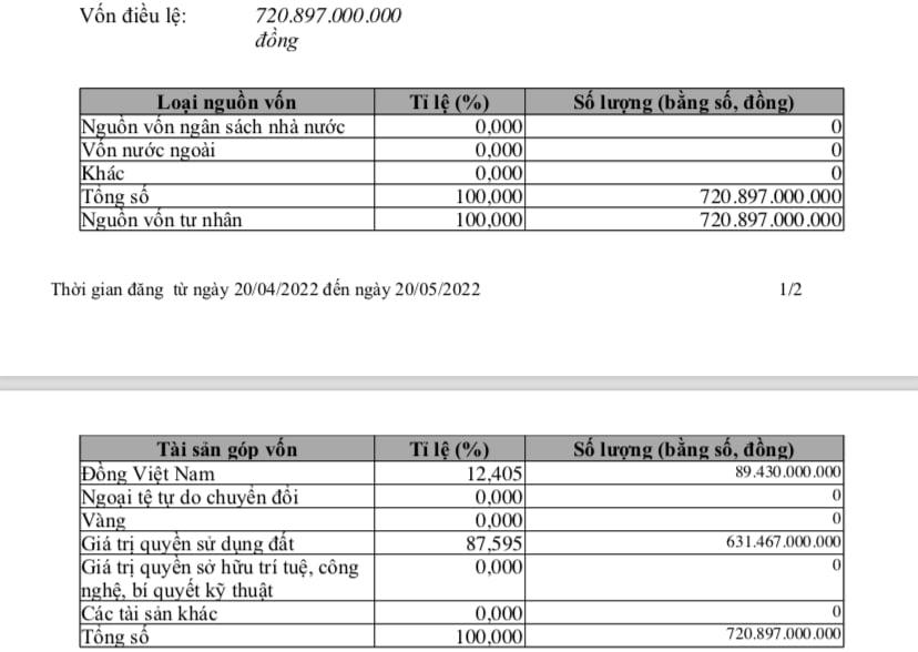 Thời điểm đăng ký thay đổi ngày 15/11/2021, công ty nâng vốn điều lệ lên 720,897 tỷ đồng. Tới tháng 4/2022, công ty tiếp tục điều chỉnh vốn điều lệ của công ty lên 920,897 tỷ đồng.