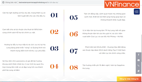 Quảng cáo trên website dự án Best Western Premier Sapphire Hạ Long và rất nhiều trang web khác xuất hiện thông tin dự án "cam kết pháp lý, sở hữu lâu dài".