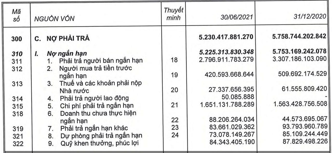 Đồng thời, dư nợ vay của Công ty cũng giảm 11% so với đầu năm, còn gần 4,539 tỷ đồng. Trong khi đó, khoản người mua trả tiền trước ngắn hạn tăng 37%, đạt 1,291 tỷ đồng.