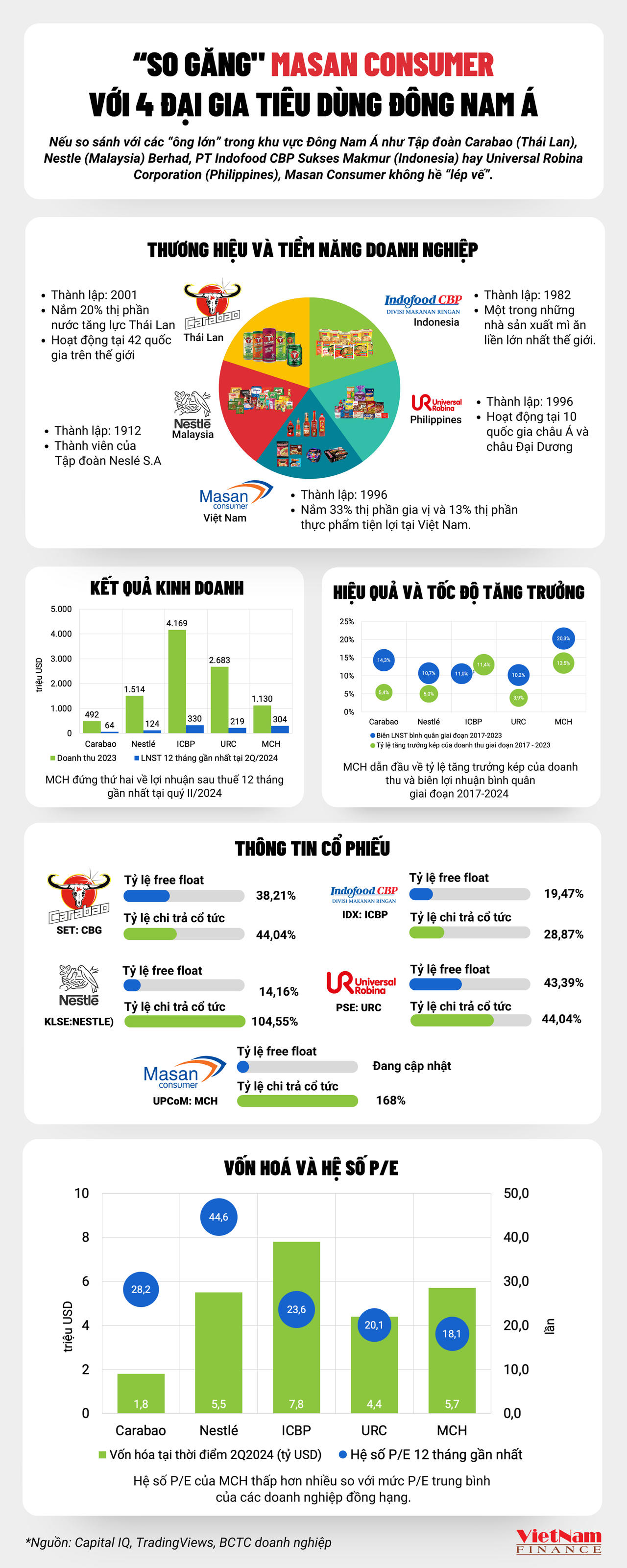 So sánh với các “ông lớn” hàng tiêu dùng trong khu vực Đông Nam Á như Tập đoàn Carabao (Thái Lan), Nestle (Malaysia) Berhad, PT Indofood CBP Sukses Makmur (Indonesia) hay Universal Robina Corporation (Philippines), Masan Consumer không hề “lép vế”.