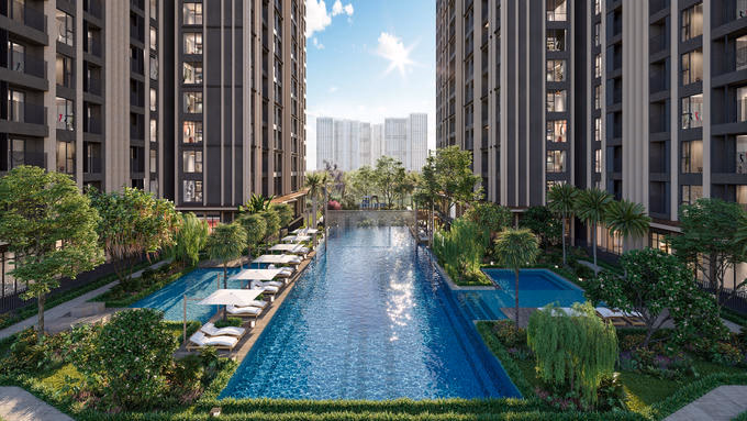 Trong khi đó, những cư dân ở căn hộ hướng Tây Bắc sẽ hưởng đặc quyền chiêm ngưỡng không gian hoàng hôn rực rỡ. Còn với cư dân sống trong căn hộ tầm nhìn nội khu, khung cảnh xanh mát của những con đường chay bộ hay làn nước xanh biếc của bể bơi sẽ được thu trọn từ ban công hay ô cửa sổ.