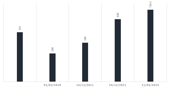 Đến ngày 12/2021, Bến Du Thuyền Đà Nẵng có hai lần tăng vốn điều lệ. Cụ thể, ngày 14/12/2021, Bến Du Thuyền Đà Nẵng tăng vốn lên 399 tỷ đồng và đạt 639 tỷ đồng tại ngày 24/12/2021.
