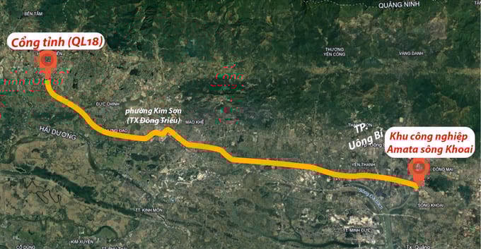Dự án đường ven sông nối cao tốc Hạ Long - Hải Phòng đoạn qua TX. Quảng Yên dài khoảng 1km, đoạn qua TP. Uông Bí dài khoảng 13,5km, đoạn qua TX. Đông Triều dài 26,5km. Tuyến đường có điểm đầu nối với trục Đông - Tây Khu công nghiệp (KCN) Amata sông Khoai, điểm cuối giao cắt với quốc lộ 18 tại khu vực cổng chào của tỉnh Quảng Ninh.
