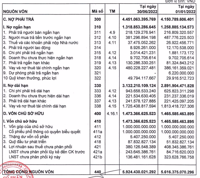 Bên cạnh đó, công ty cũng ghi nhận hơn 231 tỷ đồng doanh thu chưa thực hiện cả trong ngắn hạn và dài hạn, đến từ doanh thu nhận trước từ các khách hàng thuê đất tại khu công nghiệp.