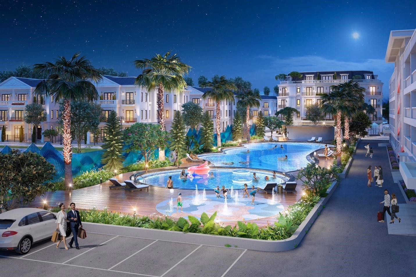 Đặc biệt, tòa nhà dịch vụ 3 tầng quy tụ các tiện ích đa dạng như bể bơi, club house và quán cafe rooftop... là những điểm nhấn độc đáo, vừa giúp cư dân thư giãn và tái tạo năng lượng, vừa gia tăng sức hút để thúc đẩy hoạt động kinh doanh sầm uất cho các dãy nhà phố, biệt thự.