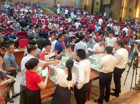 | Những năm gần đây, các phiên đấu giá đất tại Bắc Giang luôn thu hút nhiều người tham gia. |