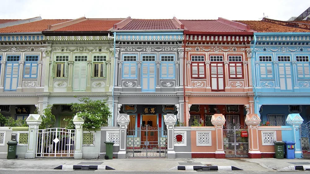 Được xây dựng bởi những người nhập cư Trung Quốc vào thế kỷ XVIII, shophouse ở Singapore là một tòa nhà 2-3 tầng được thiết kế để kinh doanh thương mại ở tầng trệt với không gian sống ở tầng trên.