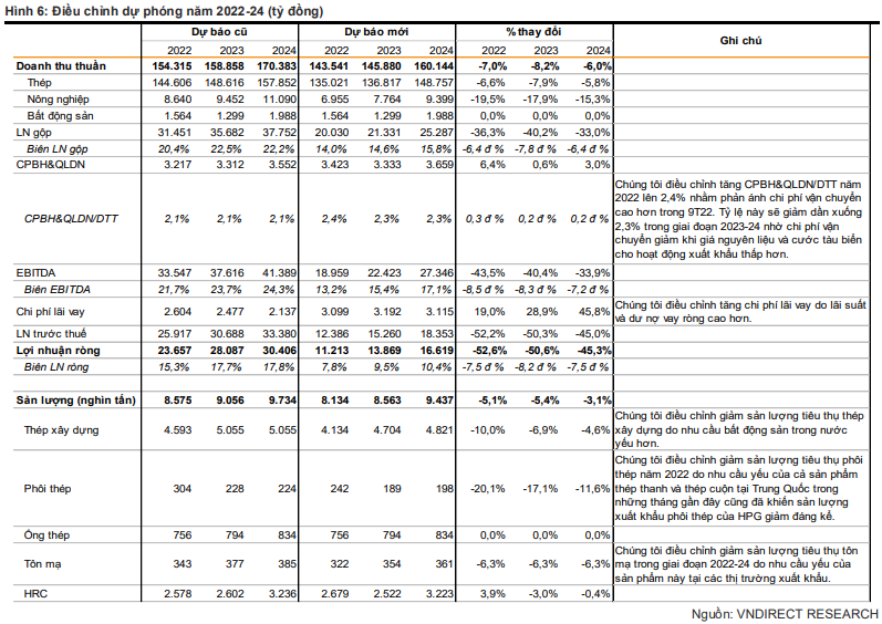 Do thị trường chung đang diễn biến kém khả quan với tốc độ nhanh chóng, SSI Research điều chỉnh giảm 16% ước tính lợi nhuận sau thuế năm 2022 HPG xuống 10,2 nghìn tỷ đồng, tương ứng với khoản lỗ ròng 270 tỷ đồng trong quý 4/2022.