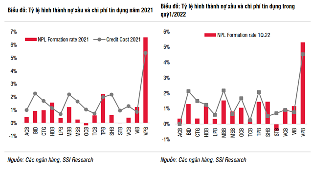 Đối với các ngân hàng thuộc phạm vi nghiên cứu của SSI Research, dư nợ cho vay đối với doanh nghiệp thuộc lĩnh vực xây dựng, đầu tư bất động sản và trái phiếu doanh nghiệp do các chủ đầu tư bất động sản phát hành ước tính lần lượt vào khoảng 9% và 2% tổng tín dụng cuối 2021. Trong khi đó, các ngân hàng có thể chưa trích trước dự phòng cho các khoản vay này nhiều, giống như trường hợp các khoản vay tái cấu trúc do Covid trước đây.
