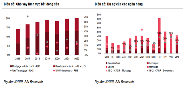 Trong vài năm qua, theo số liệu của NHNN, dư nợ dành cho chủ đầu tư bất động sản chiếm từ 5-10% mức tăng ròng của tổng dư nợ tín dụng. SSI Research cho rằng ngay cả khi hoạt động cho vay chủ đầu tư bất động sản bị hạn chế, nhu cầu tín dụng từ các lĩnh vực khác vẫn đủ lớn để đạt được mục tiêu tăng trưởng tín dụng cho năm 2022.