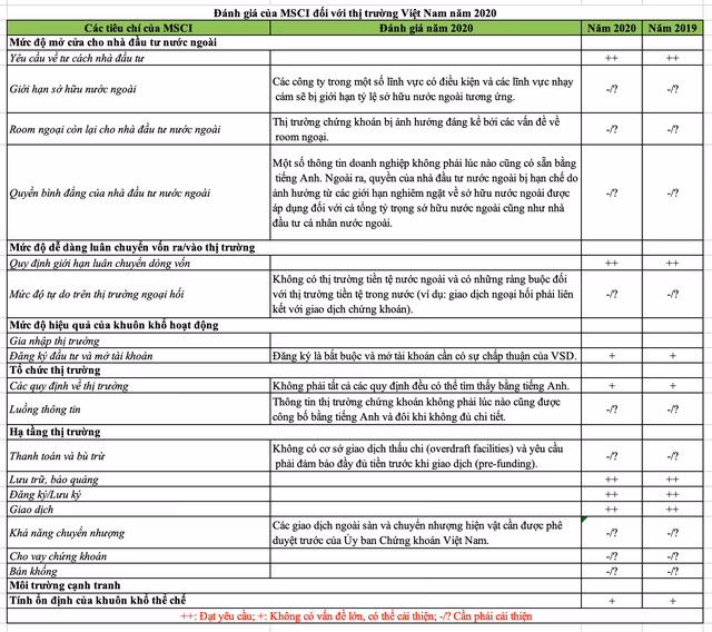 MSCI vừa công bố báo cáo đánh giá tiếp cận thị trường toàn cầu. Theo đó, tổ chức này không có thay đổi nào về các chỉ tiêu tiếp cận thị trường của Việt Nam.