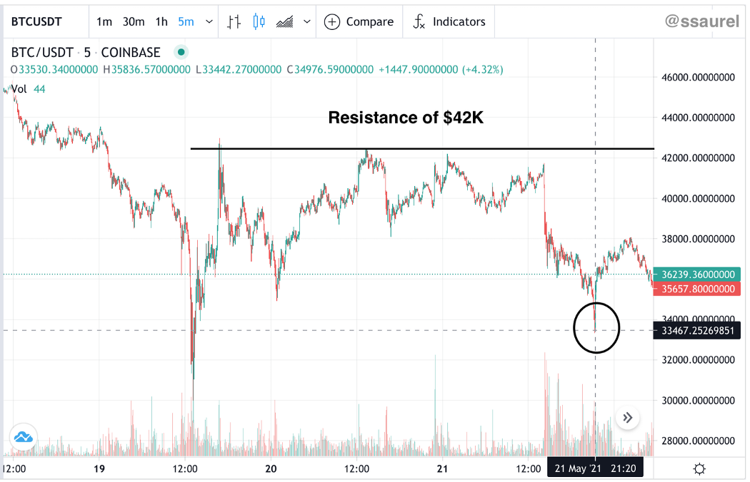 Đợt bán tháo hiện nay của Bitcoin là một sự đảo ngược lớn đối với thị trường tiền số, vốn tưởng như đang thu hút được các ngân hàng lớn ở phố Wall và các nhà đầu tư tổ chức. Tuy nhiên, một loạt các thông tin bất lợi đã khiến Bitcoin liên tiếp sụt giảm. Mọi chuyện bắt đầu bằng một dòng Tweet của Elon Musk tuyên bố rằng Tesla đã ngừng hỗ trợ thanh toán bằng Bitcoin, cho đến động thái cứng rắn của Trung Quốc đối với hoạt động giao dịch và khai thác tiền điện tử, Mỹ thì yêu cầu các giao dịch trên 10.000 USD phải được khai báo cho Sở Thuế vụ, trong khi đó Ấn Độ đang lập một hội đồng mới để xem xét lại lệnh cấm tiền điện tử. Trong vài ngày qua đã có rất nhiều chuyện không hay đã xảy ra đối với Bitcoin nói riêng và thị trường tiền điện tử nói chung.