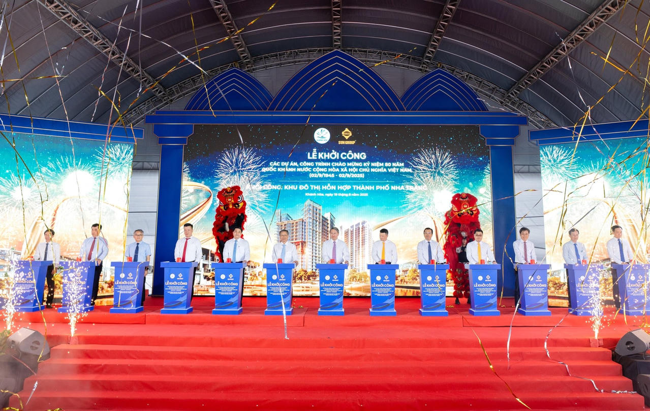 Ngày 19/8, Tập đoàn Sun Group phối hợp cùng UBND tỉnh Khánh Hòa tổ chức lễ khởi công Dự án Khu đô thị hỗn hợp Nha Trang, quy mô hơn 226 ha với tổng mức đầu tư trên 17.000 tỷ đồng.