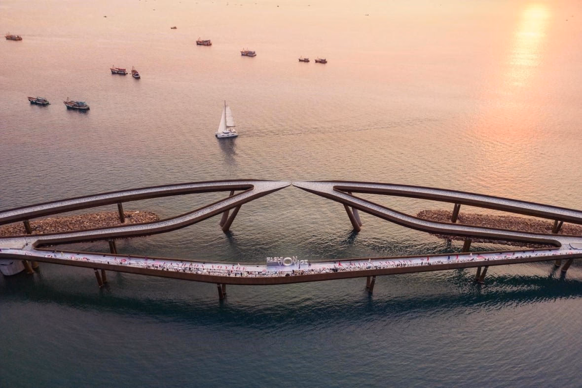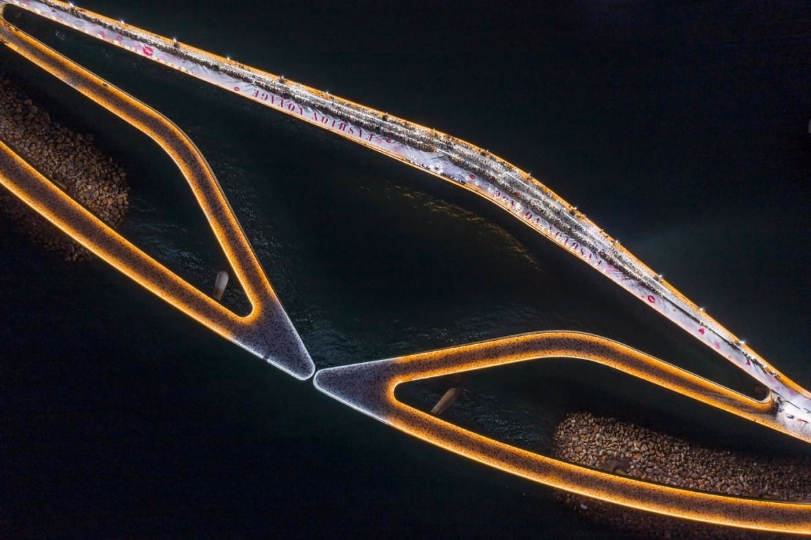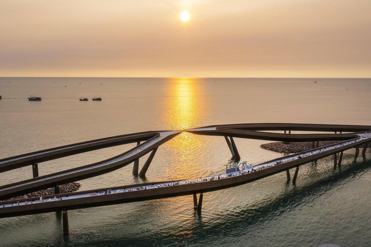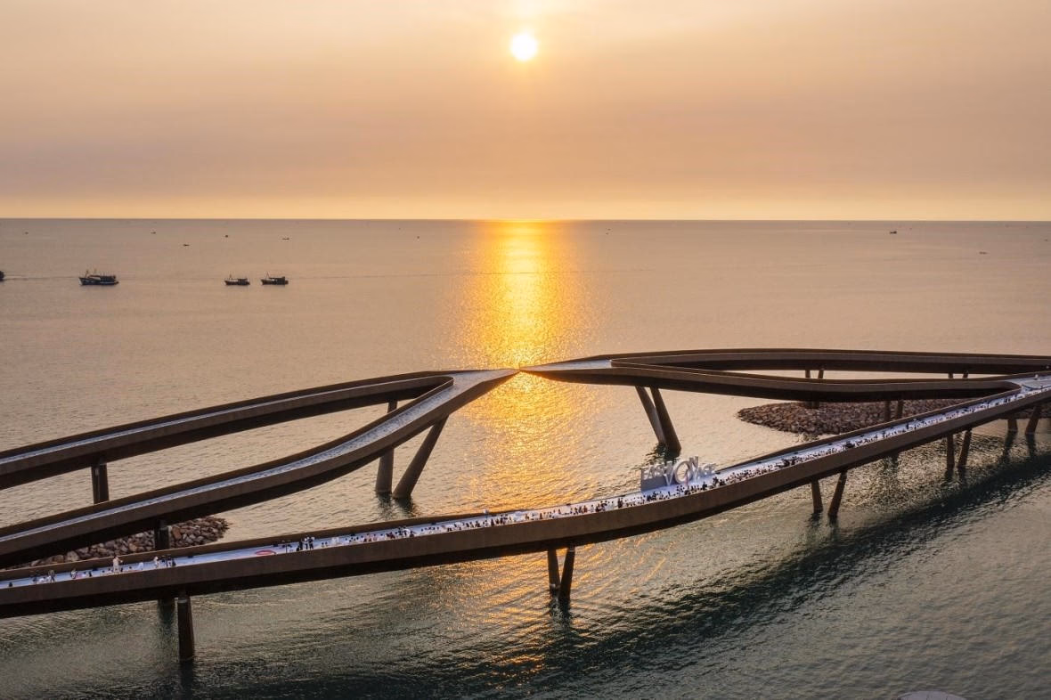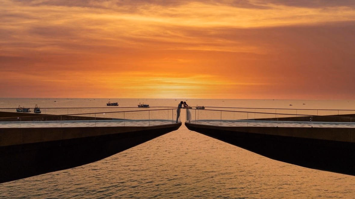 Cầu Hôn, cây cầu được thiết kế với 2 nhánh dài 400 m, hợp làm thể thống nhất nhưng không chạm, cách nhau một khoảng 45 cm. Khát khao yêu cháy bỏng tịnh tiến theo từng bước chân 2 người từ 2 phía cầu và cao trào khi đứng trước khoảng cách nhỏ, sẽ chỉ có thể được lấp đầy bởi những cái hôn, cái nắm tay thật chặt và ánh hoàng hôn diệu vợi.