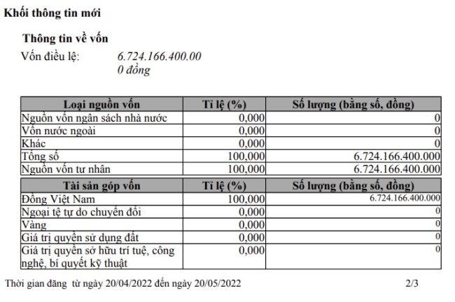 Đến ngày 20/5/2022, CRV tăng vốn điều lệ lên hơn 6.724,166 tỷ đồng.