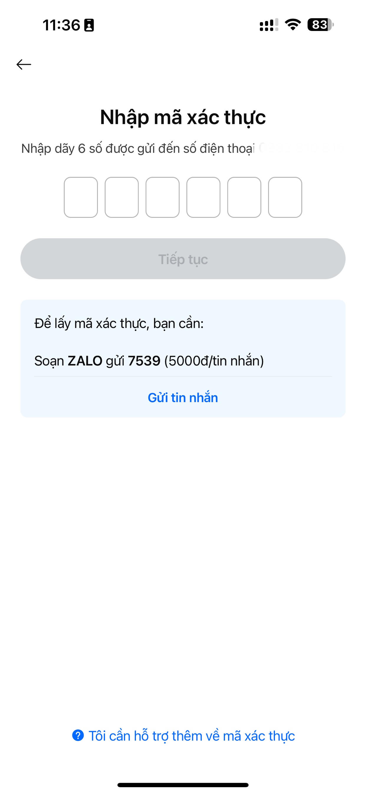 Chia sẻ với VietnamFinance, mới đây, khi đăng ký tài khoản người dùng mới trên ứng dụng Zalo, một khách hàng thanh toán tiền để nhận được mã OTP.