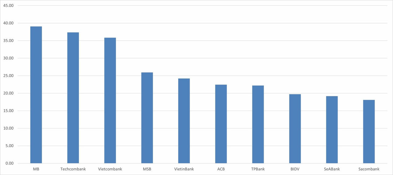 Trong bối cảnh đó, giới phân tích cho rằng, các ngân hàng có tỷ lệ CASA cao sẽ có lợi thế hơn trong việc quản lý chi phí vốn và NIM, đơn cử như Techcombank, MB, VPBank, TPBank, VietinBank,…
