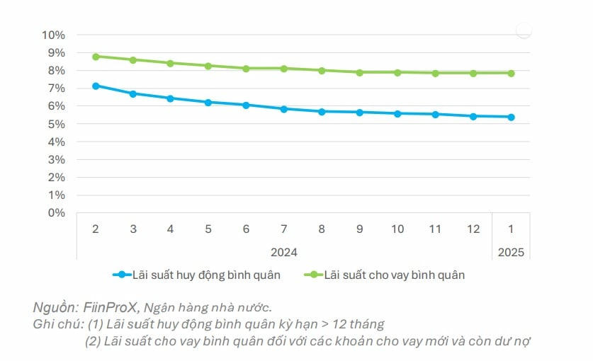 Theo số liệu của Ngân hàng Nhà nước (NHNN), tính từ đầu năm đến nay, lãi suất cho vay đã giảm 0,8%. Đặc biệt, từ ngày 25/2 - 18/3/2025, đã có tới 23 ngân hàng điều chỉnh lãi suất huy động với mức giảm từ 0,1 - 1%/năm tùy theo từng kỳ hạn.