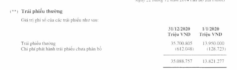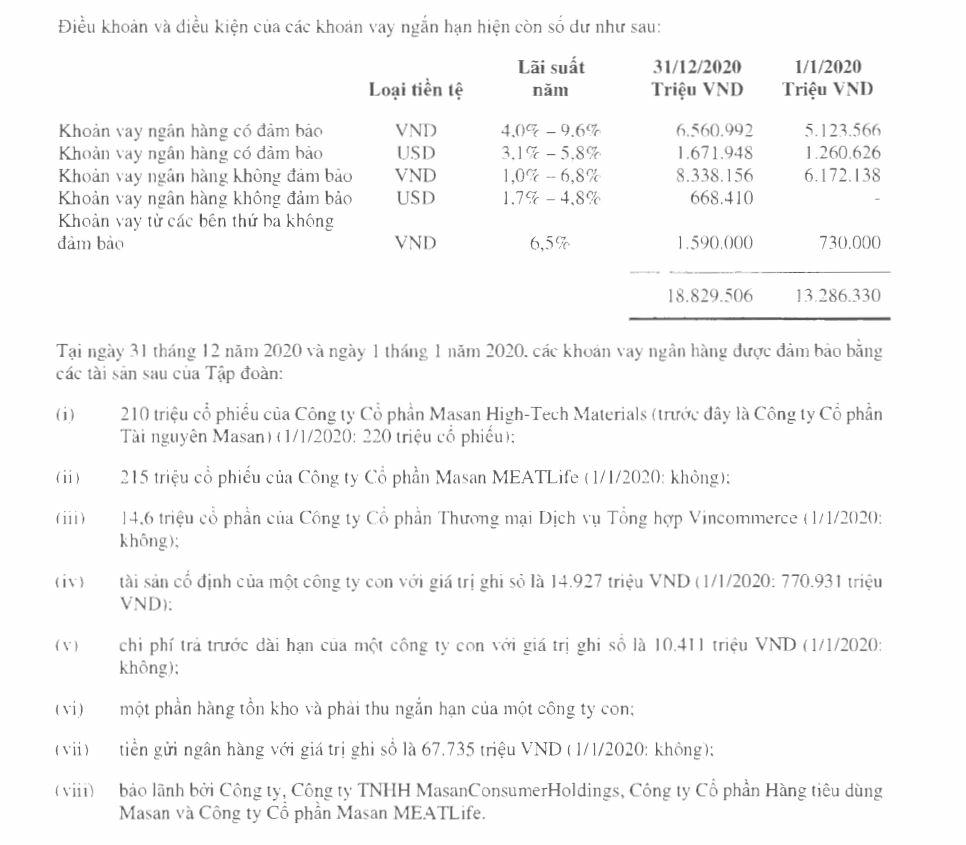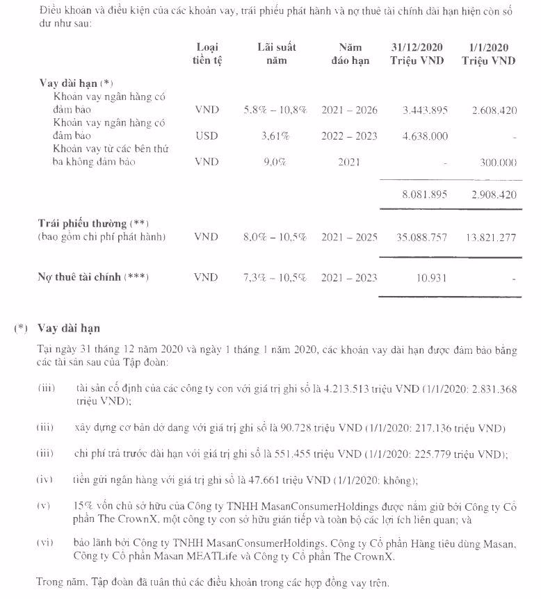 Dư nợ trái phiếu tăng mạnh là do năm 2020, Masan Group huy động hàng chục nghìn tỷ đồng trái phiếu ra công chúng.