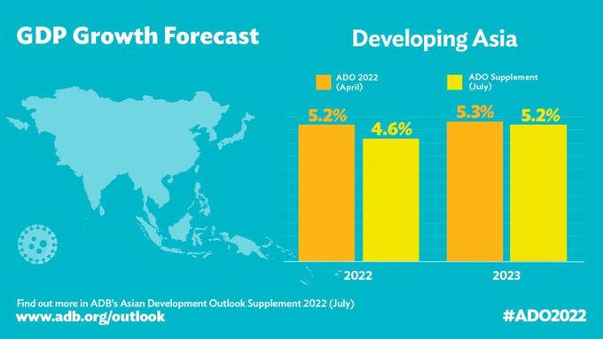 Ngân hàng Phát triển châu Á (ADB) dự báo tăng trưởng kinh tế cho khu vực châu Á đang phát triển và Thái Bình Dương là 4,6% trong năm 2022; tăng trưởng cho Việt Nam ở mức 6,5% trong năm 2022 và 6,7% trong năm 2023.