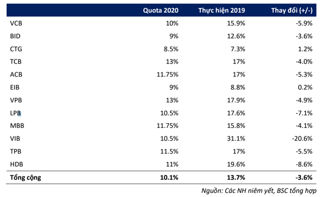 Dự báo tăng trưởng tín dụng trong năm 2020 sẽ đạt 11%. Việc đẩy mạnh đầu tư công sẽ tạo ra việc làm, từ đó tăng nhu cầu tín dụng.