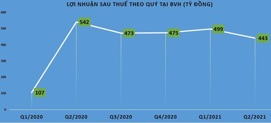 Tính chung 6 tháng đầu năm 2021, hoạt động kinh doanh bảo hiểm tại BVH lỗ gộp hơn 471 tỷ đồng trong khi cùng kỳ 2021 chỉ lỗ gộp gần 101 tỷ đồng. Đồng thời, hoạt động tài chính cũng giảm 33% ,ở mức gần 2.579 tỷ đồng; lợi nhuận khác cũng giảm 43% về mức 3.983 tỷ đồng. Do đó, lãi sau thuế tại tại BVH giảm 17% so với cùng kỳ, chỉ đạt gần 542 tỷ đồng.