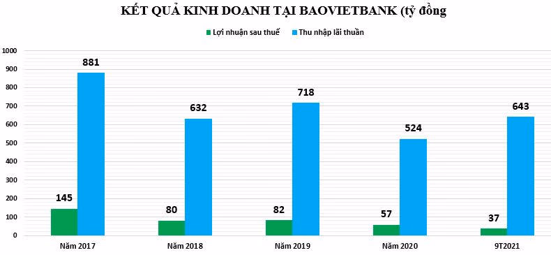 Hiện tại ngân hàng này vẫn chưa công bố báo cáo tài chính năm 2021. Tại báo cáo tài chính hợp nhất 9 tháng đầu năm 2021, BaoVietBank dành ra hơn 531 tỷ đồng để trích lập dự phòng rủi ro tín dụng, tăng 80%, do đó báo lãi trước thuế gấp 2 lần cùng kỳ, đạt gần 46 tỷ đồng.