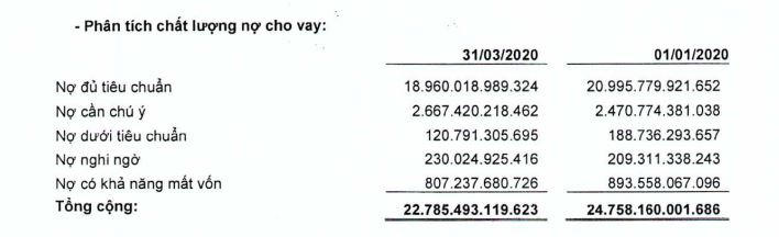 Đáng chú ý, tính đến 31/3/2020, tổng nợ xấu tại BaoVietBank ở mức 1.158 tỷ đồng, tỷ lệ nợ xấu ở mức 5,1%.