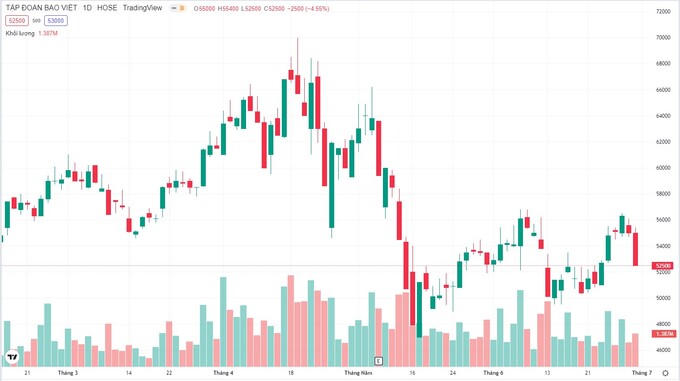 Trên thị trường chứng khoán, cổ phiếu BVH ghi nhận giảm 22,14% (tính từ thời điểm giữa tháng 4 đến cuối tháng 06/2022). Kết phiên ngày 30/06 giá cổ phiếu BVH giao dịch ở mức 52.500 đồng/ cổ phiếu.