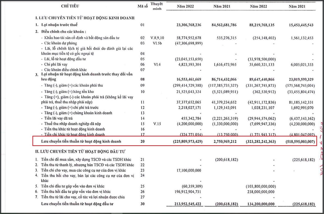 Dòng tiền kinh doanh âm 323 tỷ đồng