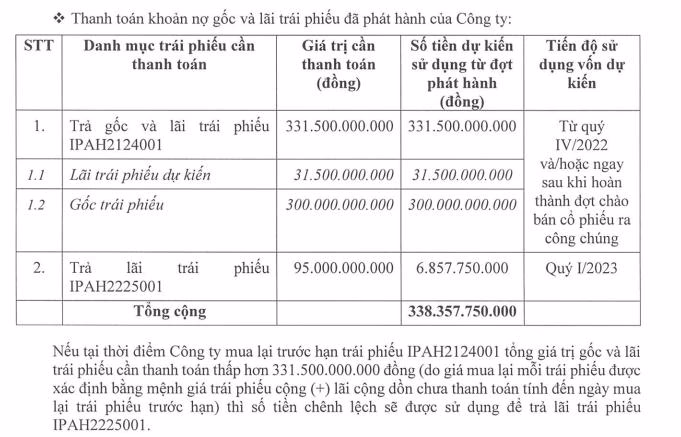 Tuy nhiên, lãi vay của IPA trong kỳ gấp 2,3 lần so với cùng kỳ, ghi nhận 236 tỷ đồng. Lượng vay dài hạn tăng 24,7% so với đầu năm và đạt 4.475 tỷ đồng, chủ yếu là các khoản trái phiếu phát hành từ đợt tháng 2/2022, 12/2021 và 11/2021 với kỳ hạn 3 năm và lãi suất cố định 9,5%/năm. Ngoài ra, công ty dự phòng 224 tỷ đồng giảm giá cổ phiếu CRE của CTCP Bất động sản Thế Kỷ (HoSE: CRE). Kết quả, lợi nhuận sau thuế cổ đông công ty mẹ 6 tháng đầu năm đạt 155 tỷ đồng, giảm 87%.