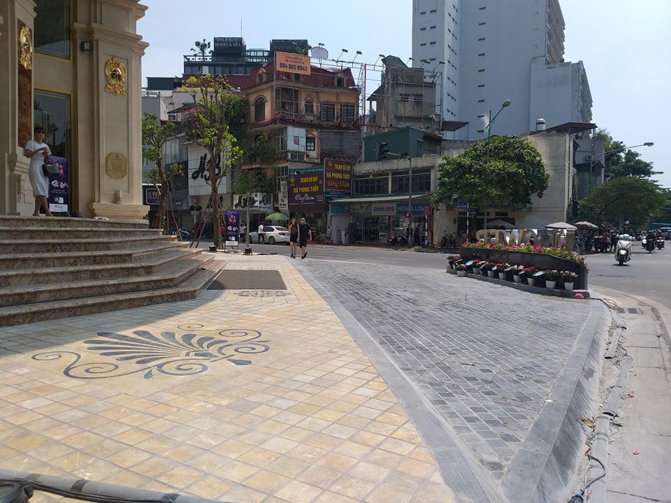 Phần vỉa hè phía sau đài phun nước mini này cũng được Tập đoàn DOJI thiết kế gần như thành sảnh riêng của tòa nhà.