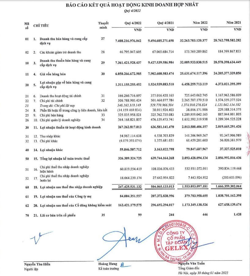 BCTC hợp nhất Q4/2022 GEX. |